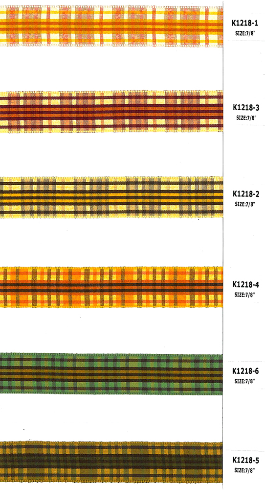 Ta seria to wstążka w kratkę o szerokości 1 cala. Mieszamy i bawimy się różnymi kolorami włóczek, aby tkać tę wstążkę. Krzyżujące się linie tworzą zabawną i uroczą kratkę. Jest wiele kombinacji kolorów do wyboru. Można również zaaranżować kolory na zamówienie. Krawędź jest bez drutu. Świetna do pakowania prezentów, kokardek, ha
