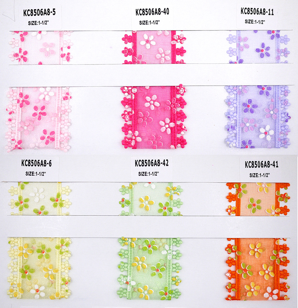 Kwiatowa wstążka organzy z wycięciem kwiatów na krawędziach