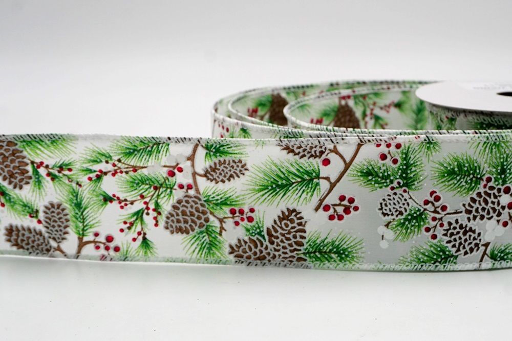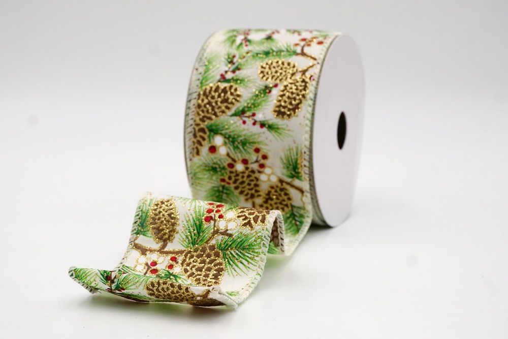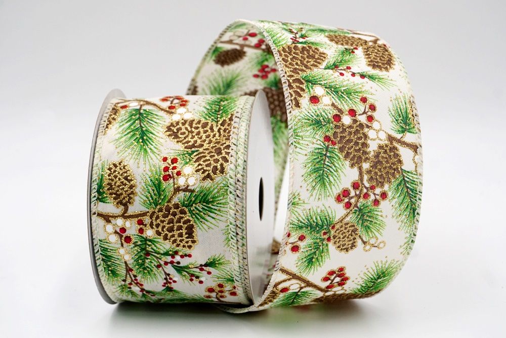 Wstążka druciana z szyszką i jagodą wiecznie zieloną_KF9798.KF9802