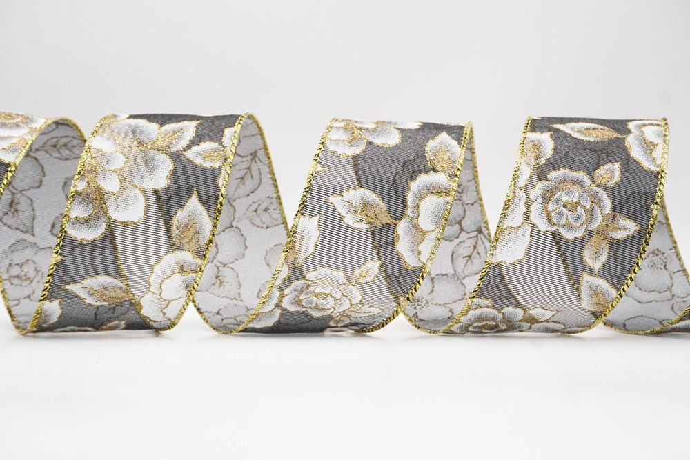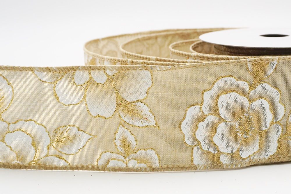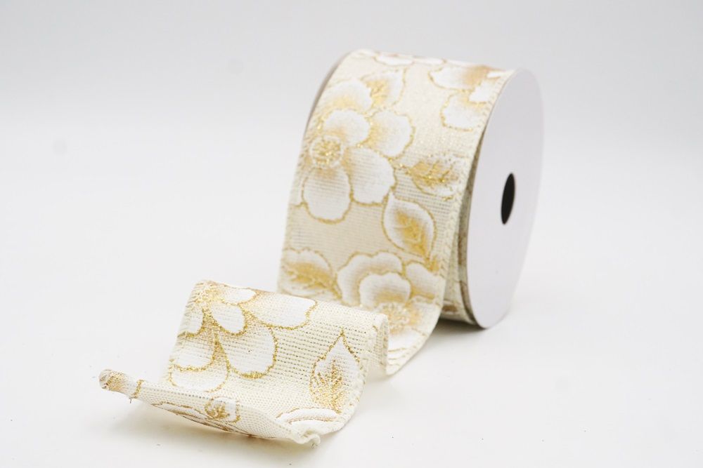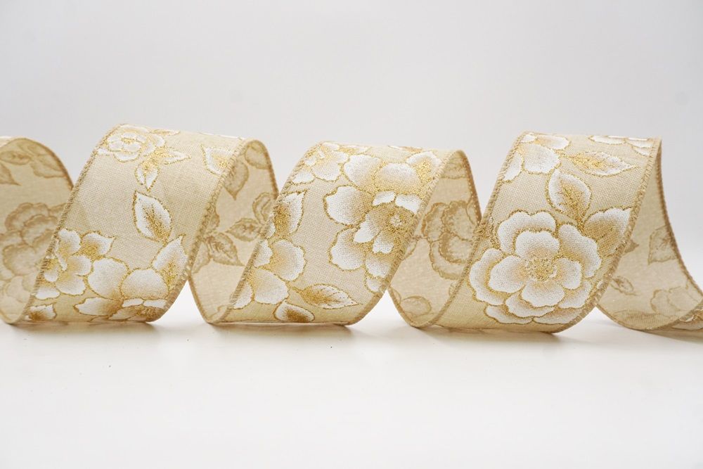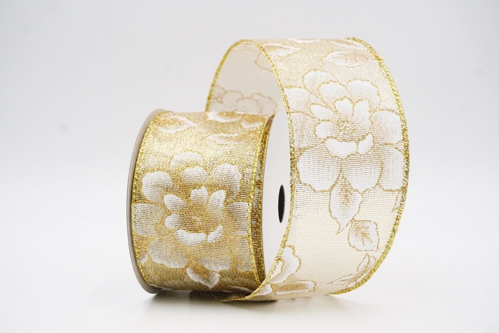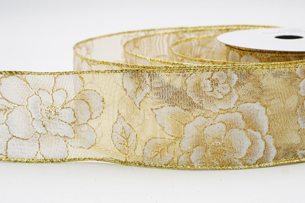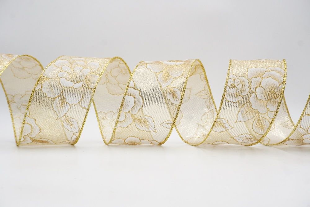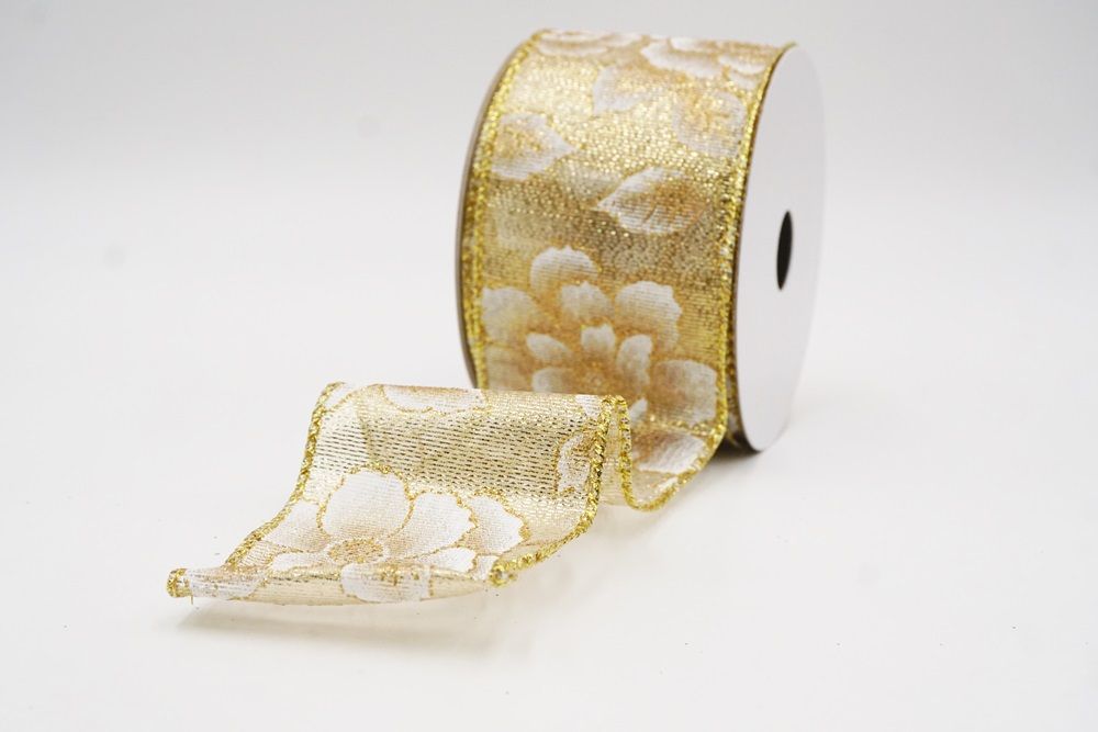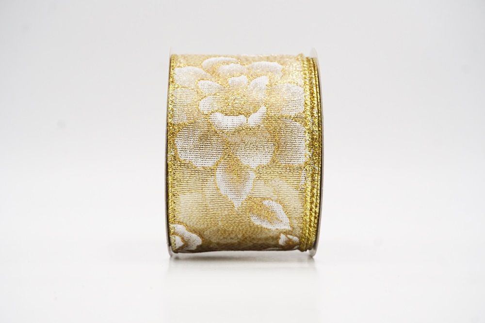 Fita de Natal Luxuosa Floral Dourada com Fio_KF9956.KF9957.KF9958
