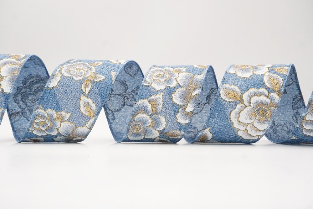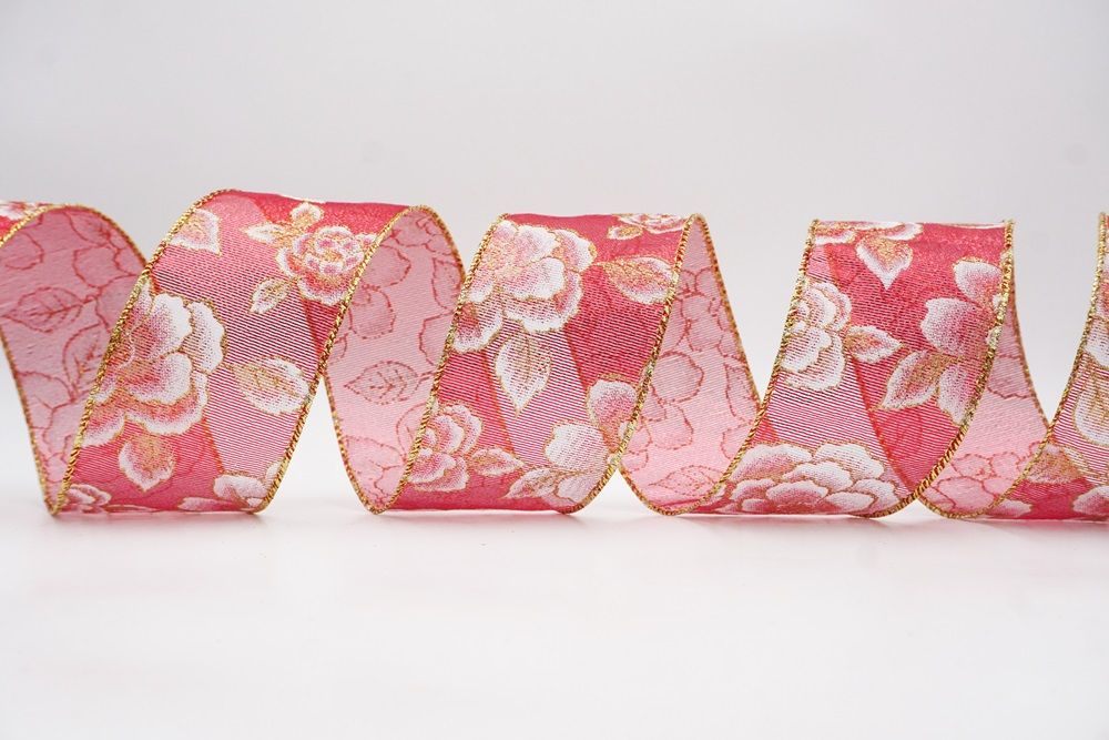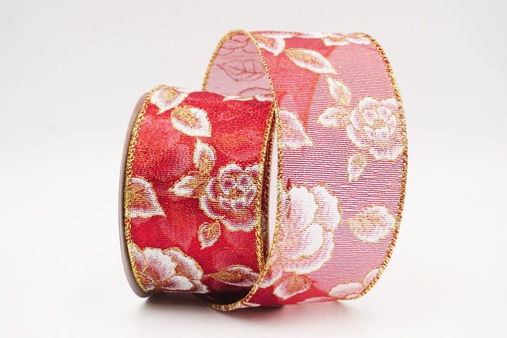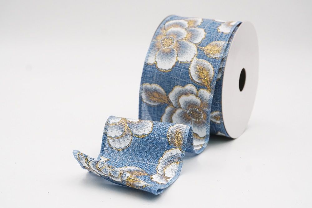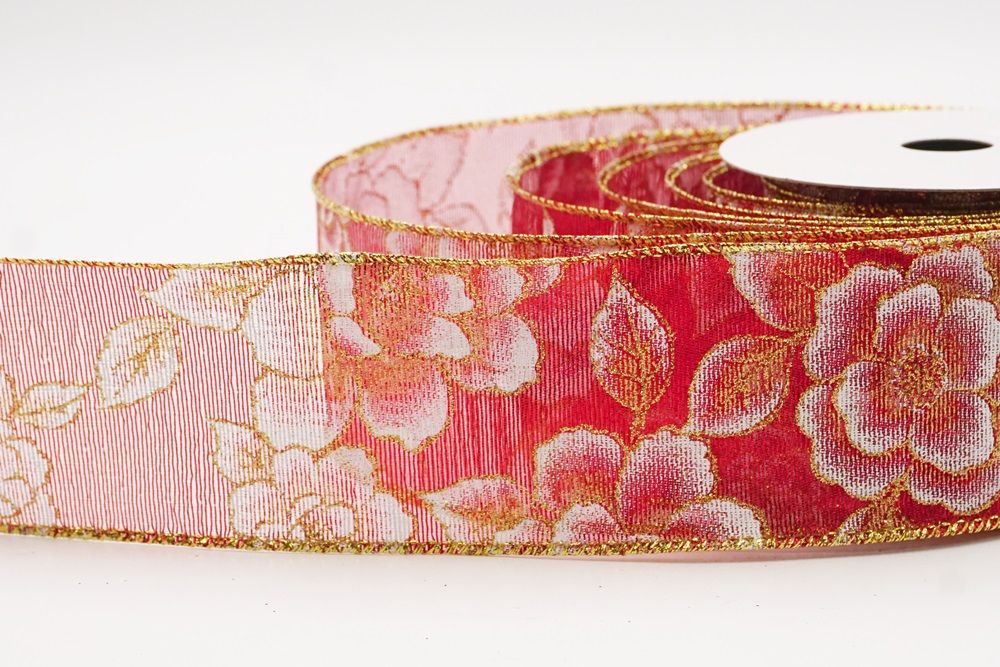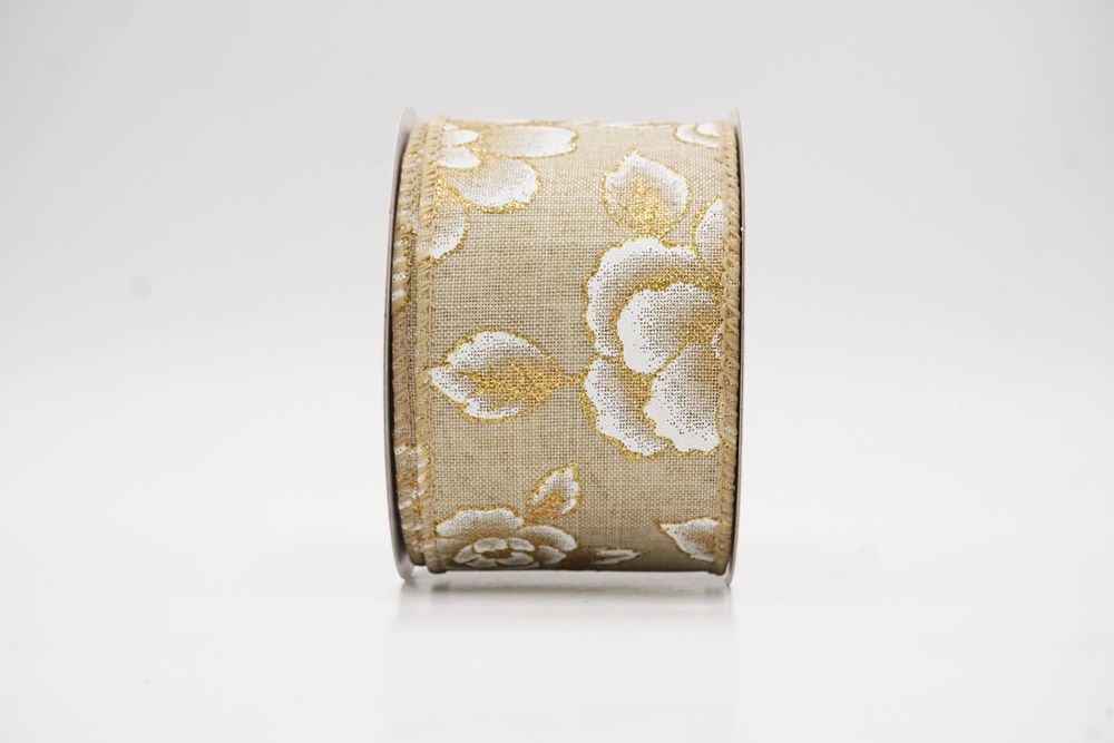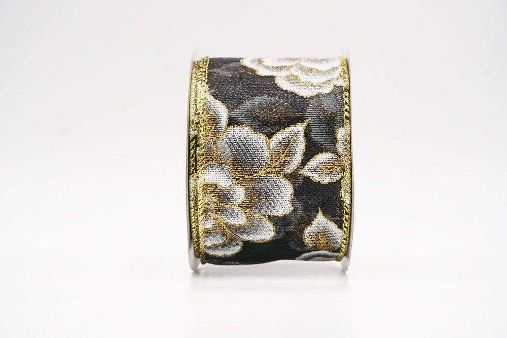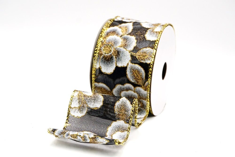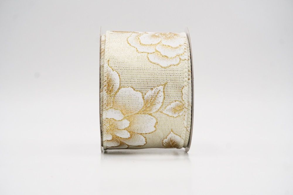 Fita de Natal Luxuosa Floral Dourada com Fio_KF9956.KF9957.KF9958