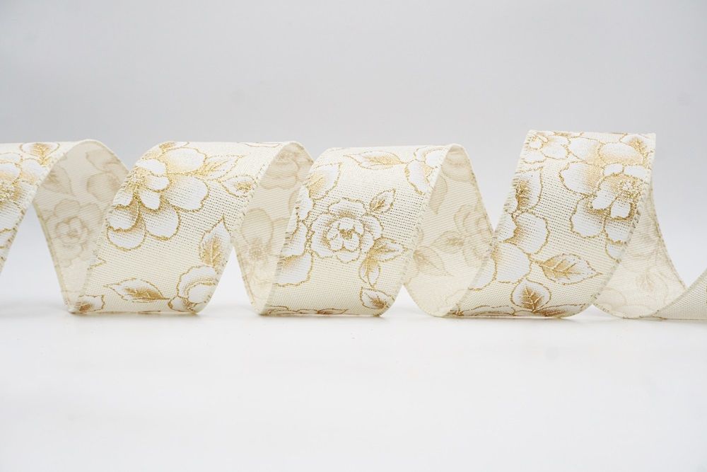 Fita de Natal Luxuosa Floral Dourada com Fio