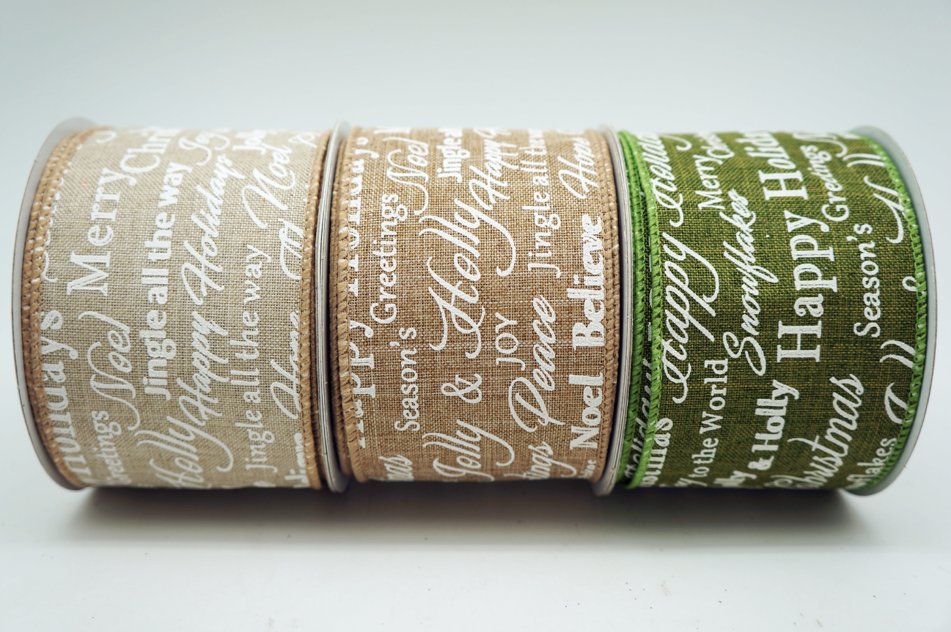 Esta fita festiva e narrativa apresenta todos os tipos de palavras de Natal impressas em branco fosco em tecido de juta falsa. Existem narrativas como “Noel”, “Feliz Natal”, “felizes festas”, “saudações da estação”, “alegria”, “alegria ao mundo”, “alegre e alegre”, “acreditar”, “esperança” e “paz”. Essas palavras de Natal são escritas em diferentes fontes e tamanhos e alinhadas horizontalmente.