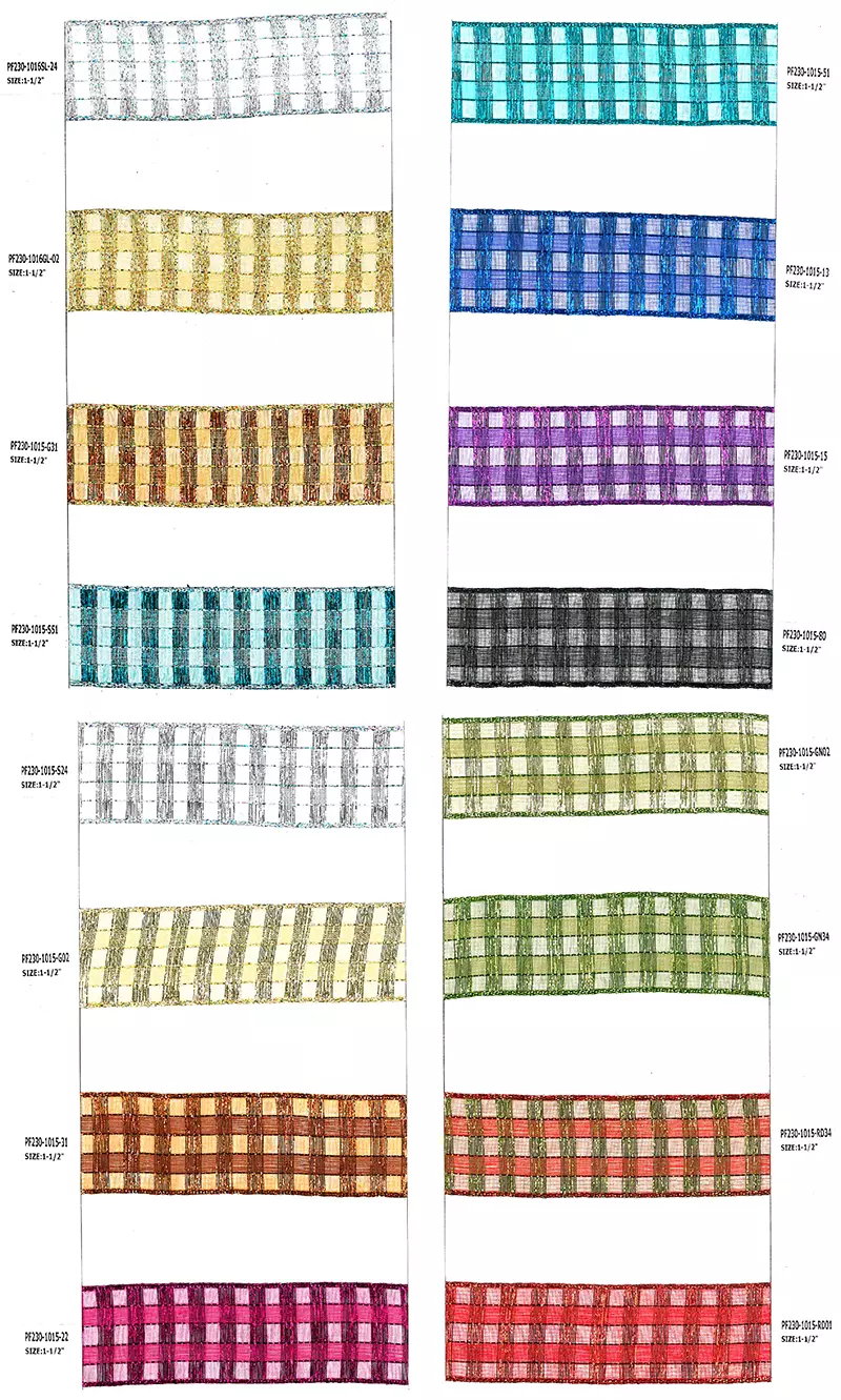 Fita de cheque brilhante metálica de 1-1/2 polegadas apresenta um visual combinado de metálico e transparente. Sua borda com fio é ótima para manter a forma dos laços. Atualmente disponível em 13 cores metálicas. Esta fita é perfeita para decorações de Natal, embrulho de presentes, guirlandas, laços e arranjos florais.