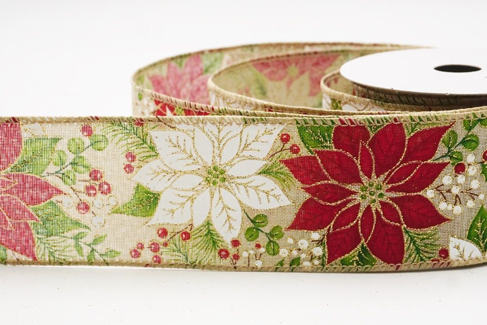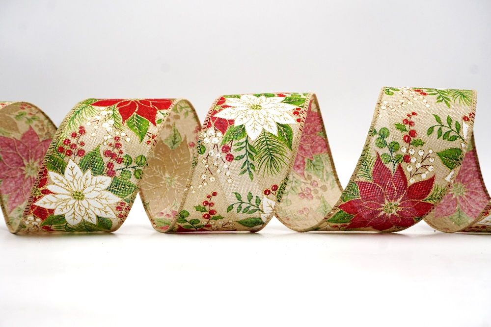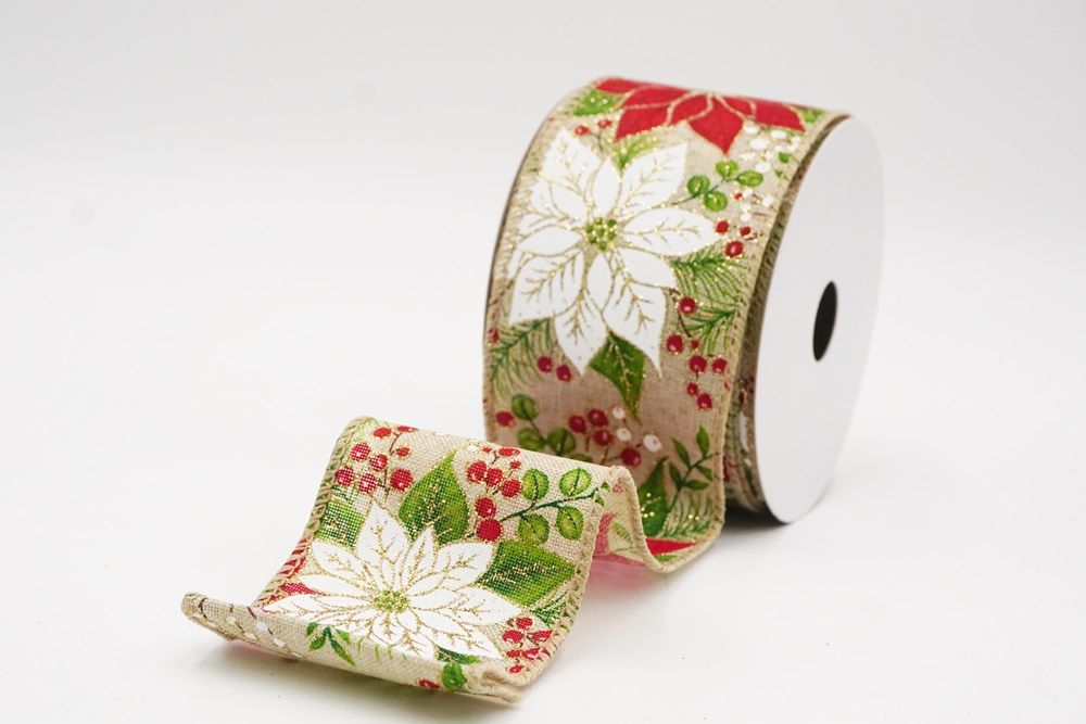 Esta fita de poinsettia traz uma sensação festiva acolhedora, ideal para guirlandas, arranjos de mesa e embalagens de Natal. A arte floral confere um aspecto artesanal e sazonal.