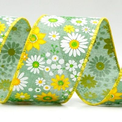 Capture a essência da primavera com a Fita com Fio de Flor Margarida em Flor, disponível em tamanhos que variam de 1 polegada a 2,5 polegadas de largura. Feita de juta falsa, esta fita adiciona um toque rústico e encantador às suas criações de primavera. Adornada com delicadas flores de margarida em uma variedade de cores vibrantes da primavera, incluindo azul denim, rosa, amarelo, roxo, azul bebê e verde claro, esta fita exala a frescura e vitalidade da estação.