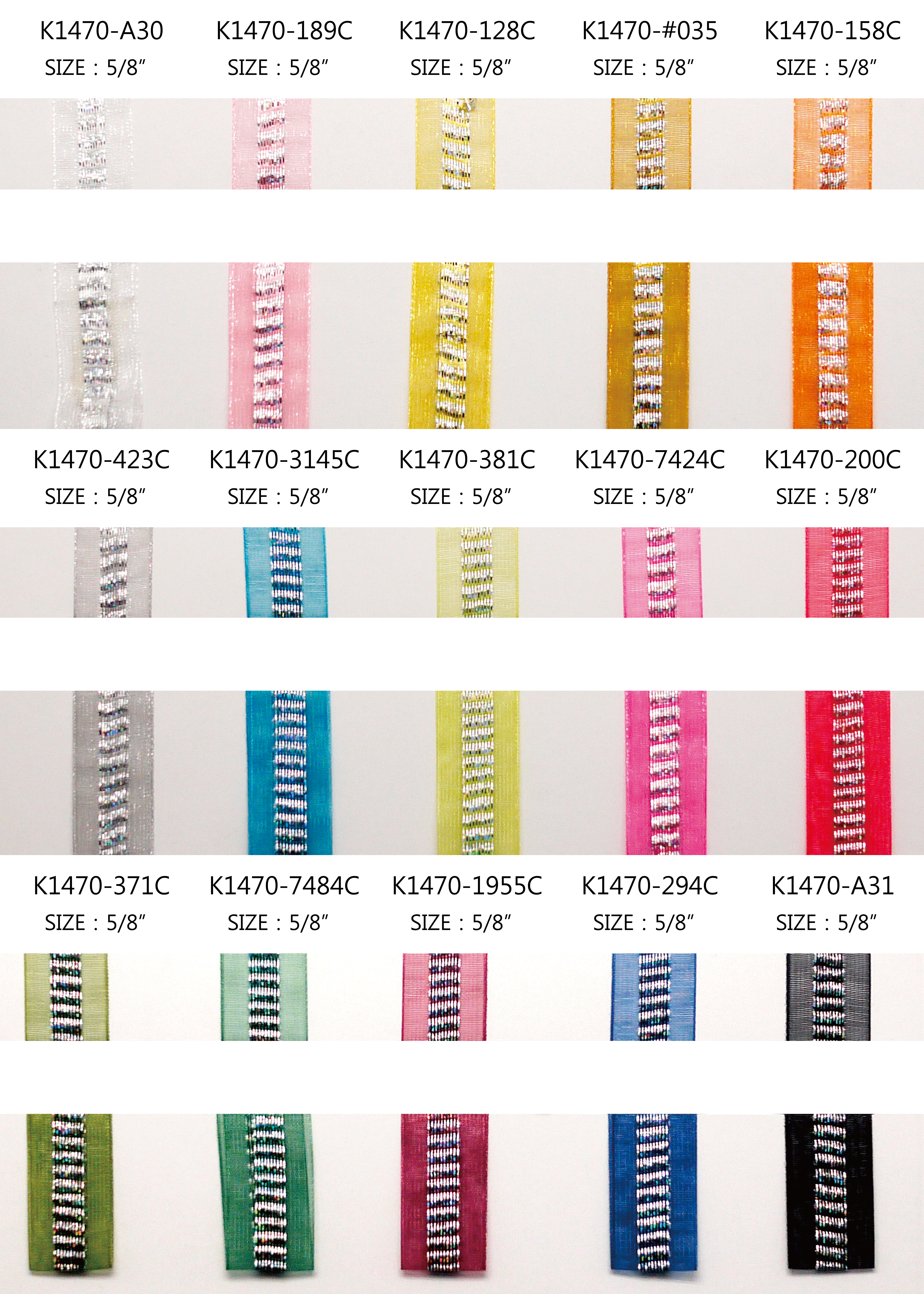 Эта серия представляет собой веселую полупрозрачную органзу шириной 5/8 дюйма с голографической металлической нитью, вплетенной в центр. Она двусторонняя и доступна во всех цветах. По запросу могут быть изготовлены индивидуальные цвета или цвета по пантонам. Край без проволоки. Эта органза/металлическая лента отлично подходит для всех видов декора, упаковки подарков, рукоделия и многого другого, где требуется немного блеска.