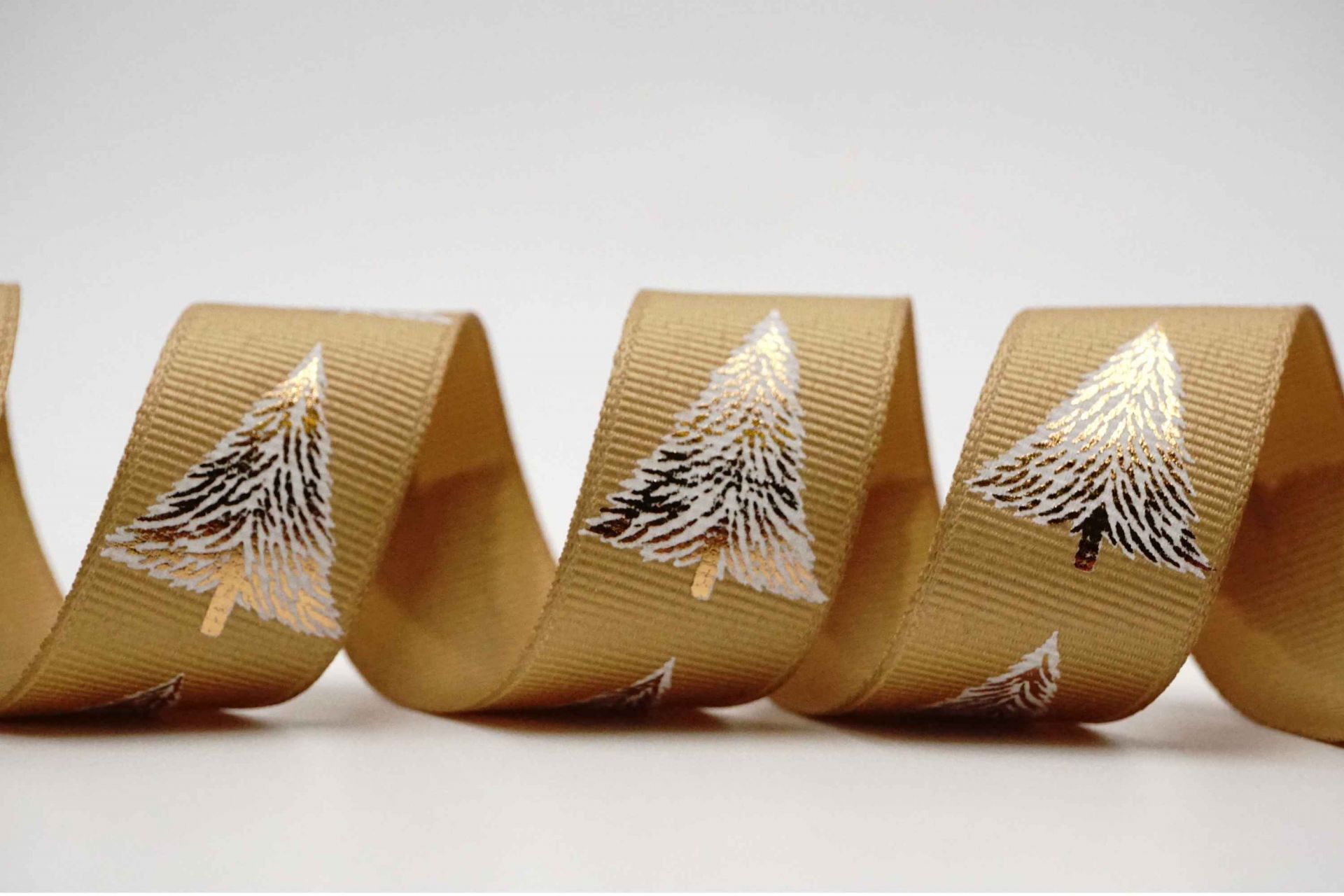 Фольгированные принты рождественских деревьев на гросгрейне и сатиновой ленте