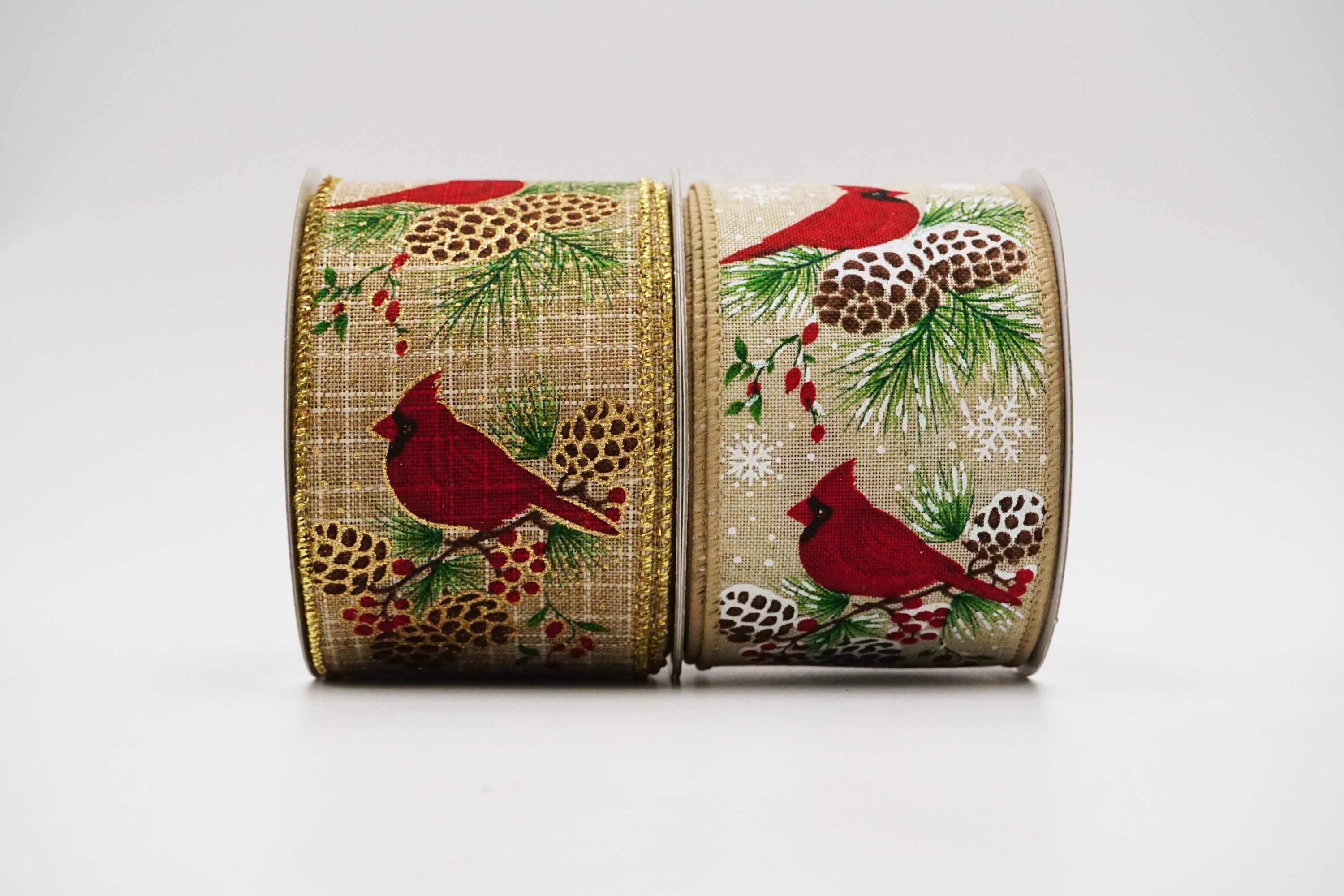 Ця стрічка з пташкою Робін має 2 різні дизайни візерунків і 3 види тканин: оксамит з простим переплетенням, густе просте переплетення та штучний мішковина з простим переплетенням. Оксамит з простим переплетенням має ближчу текстуру та пухнастий дотик простого переплетення.