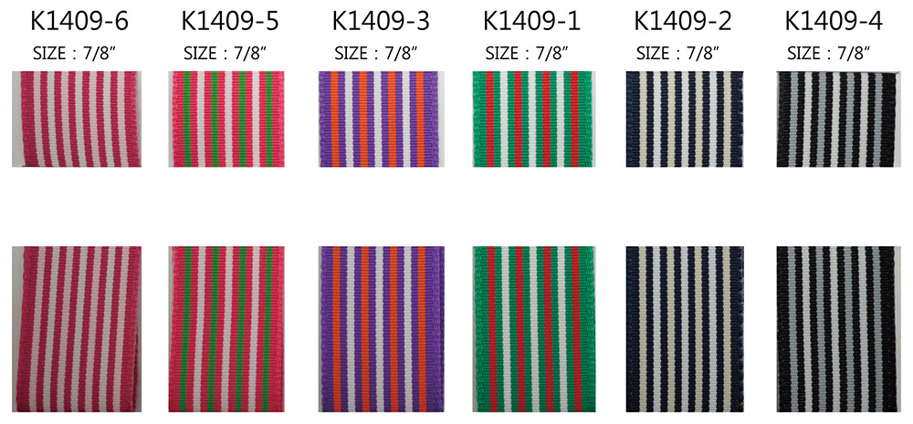 编织织带,直条纹造型设计,好看的经典。有多款颜色可供挑选:红色/绿色、深蓝色/米白色、橘色/紫色、黑色/灰色、绿色/桃红色和浅粉色/桃红色。本款没有正面与反面之分。织带边缘使用相特殊收编手法,使织带经拉扯或剪裁后,不易受到损害,此外,相较于加入细铁丝,此款更能展现织带优美灵活的线条。