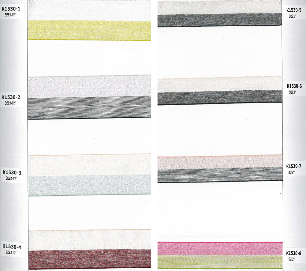 有不同颜色可供挑选,也可以依照客乎需求做搭配与制作,此款缎带没有正面与反面之分;相较于加入细铁丝的织带,此款织带更能展现织带的灵活线条。