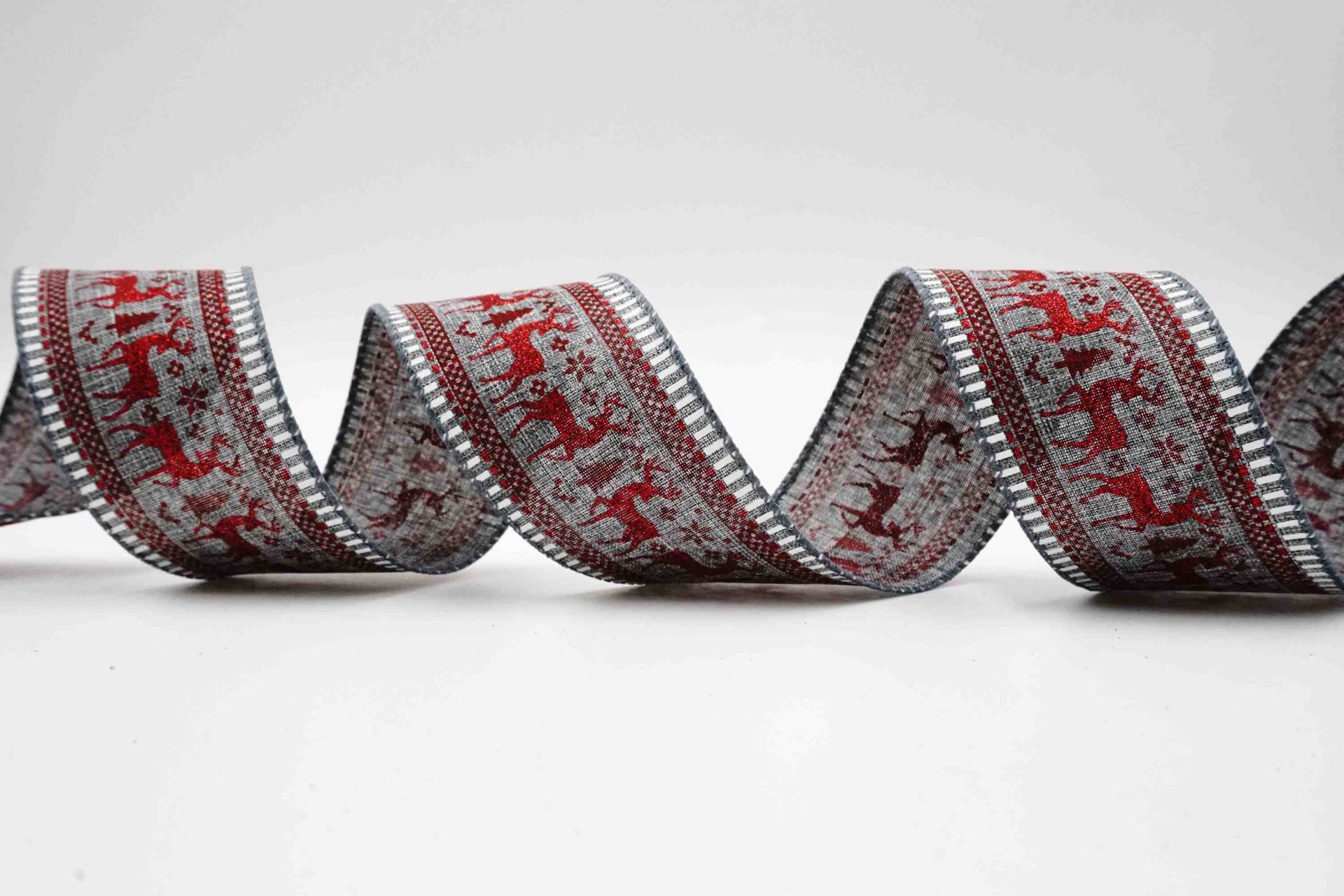 此款缎带是带有民族风的麋鹿设计加上小雪花花瓣是民间艺术遇见圣诞节的时候。