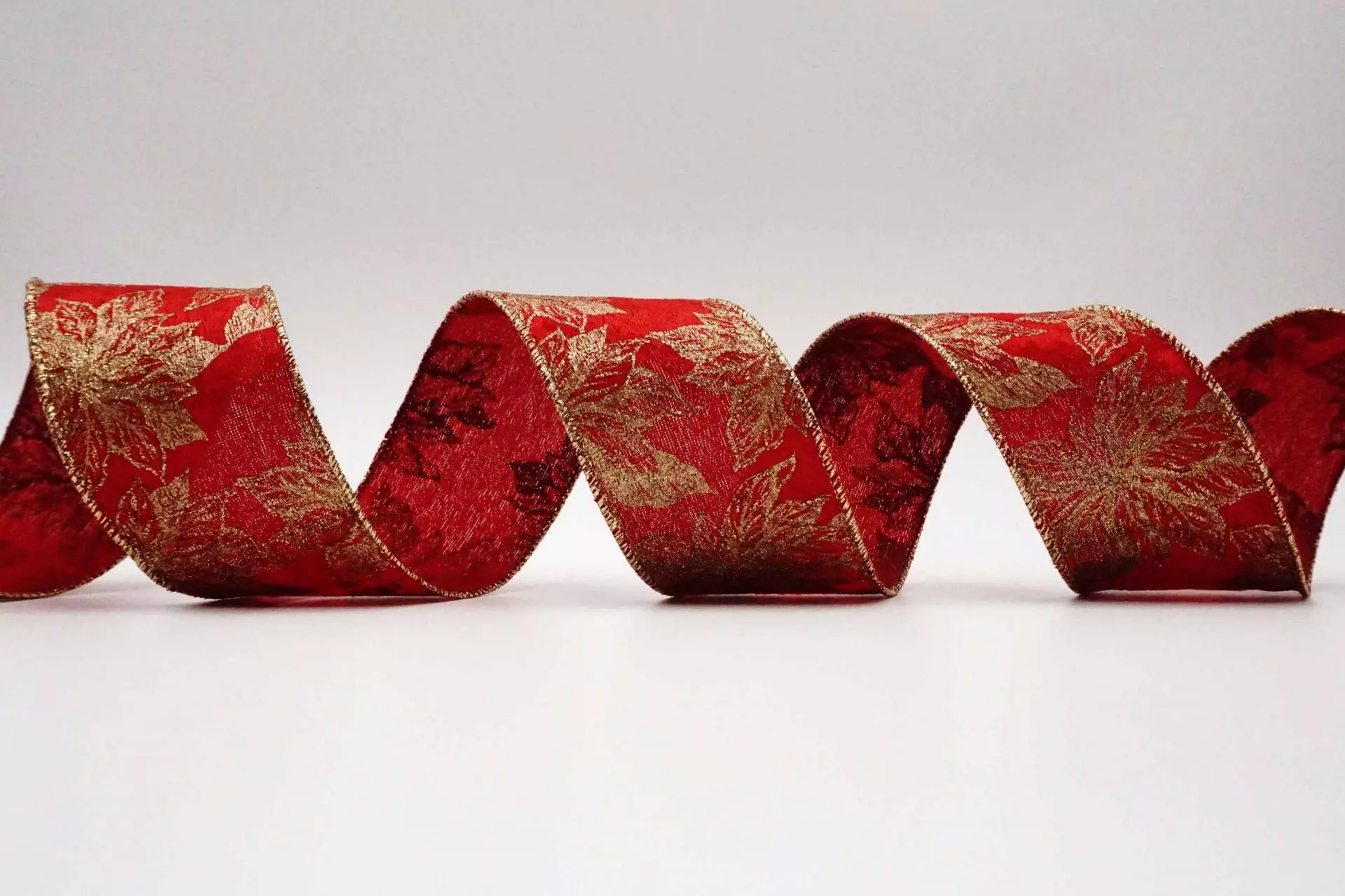 此缎带使用最经典的的红色和绿色作为背景,并在上面印有哈利叶和红色浆果或圣诞红花朵图案,花朵中还有金色衬线勾勒出整朵花的轮廓,显得高贵优雅.