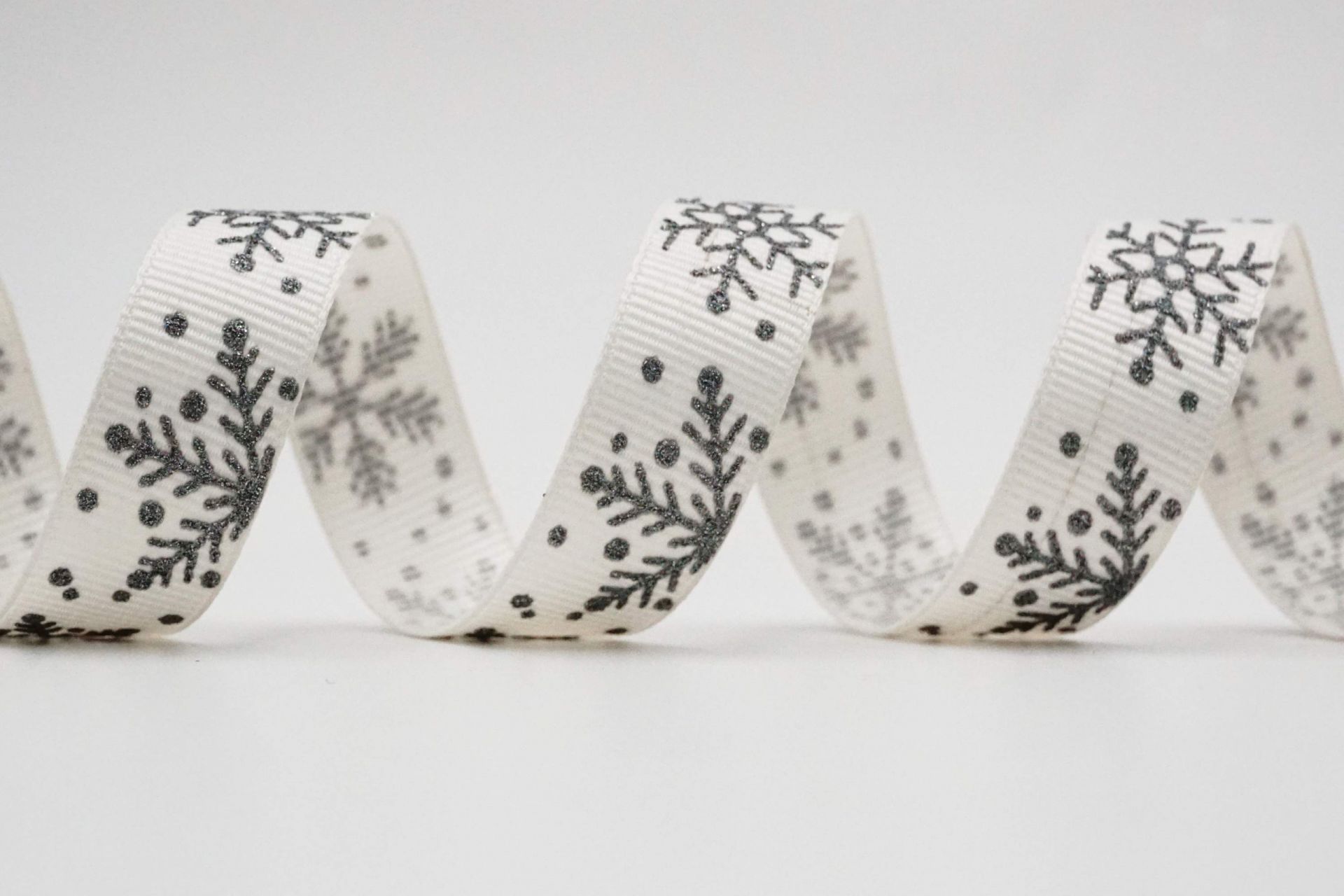 此缎带设计以雪花为主题,可以清楚地看到它们的美丽形状,为了营造一种神奇而神秘的感觉,我们在雪花上印有不同颜色亮葱,增添圣诞的氛围.