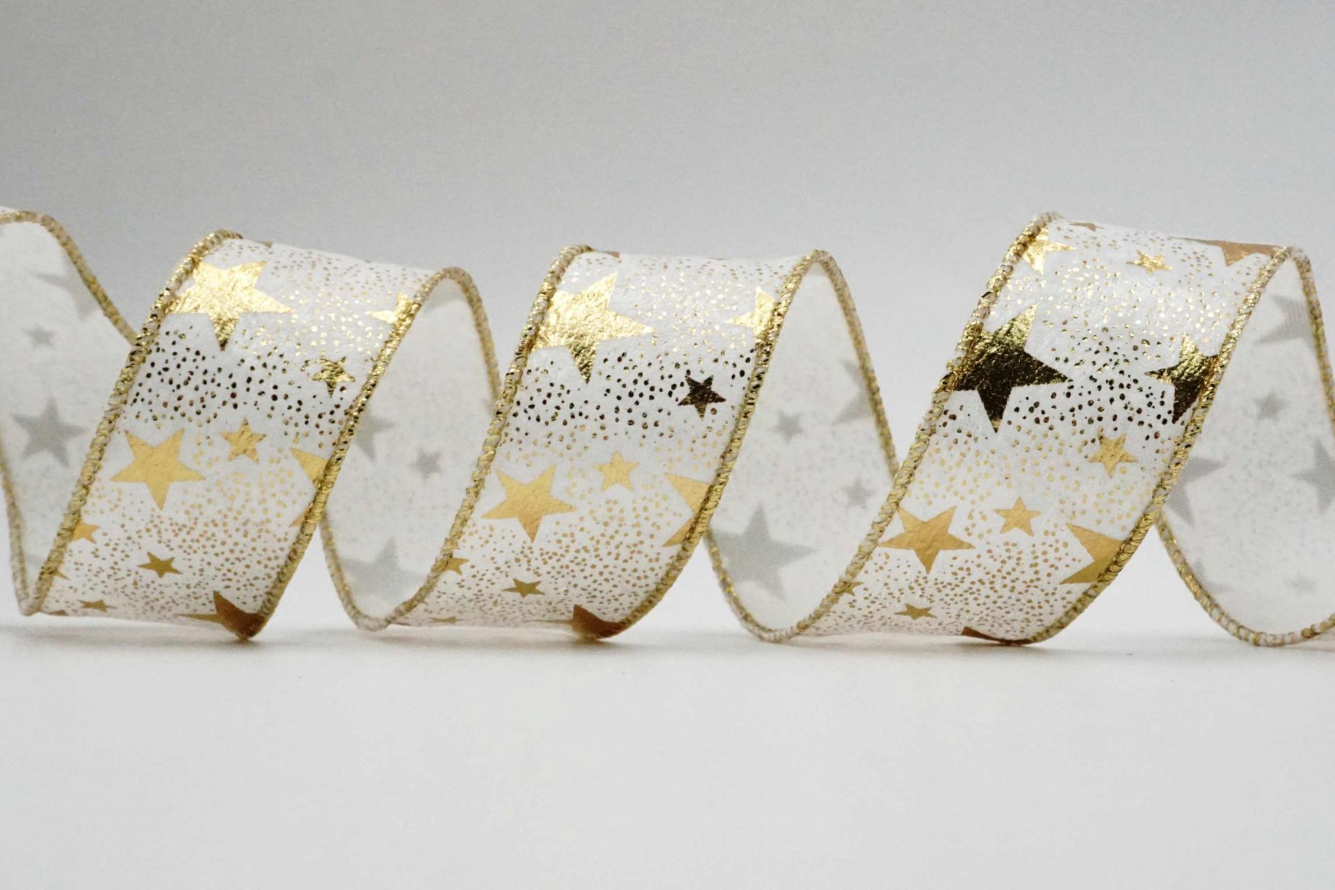 星星的象徵在聖誕節慶祝活動中具有特殊的意義,使用這款緞帶,您可以根據需要裝飾的任意位置添加星星,不僅僅是在聖誕樹頂部. 我們捕獲天空星空點點以主題製作此緞帶,緞帶上面印上了大大小小的金色亮蔥星星,多雲和繁星點點情景打造出嶄新的聖誕節場景,帶來節日氣氛.