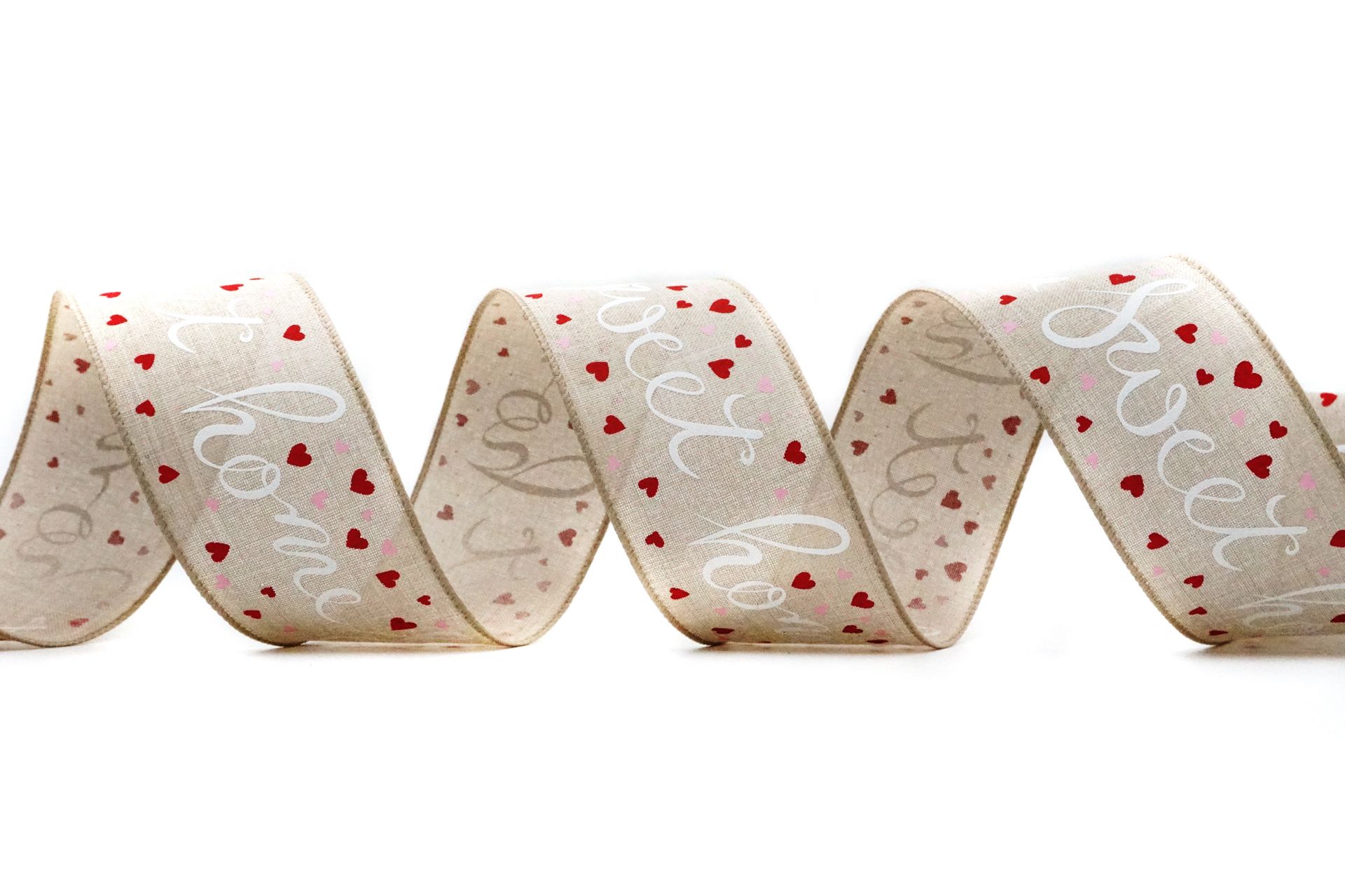 粗仿麻布底上以愛心為主題,有著各式各樣的愛心設計主題, 營造出可愛又有趣的風格! 緞帶布底是粗仿麻布,寬度選用2.5"是最受歡迎的選擇, 緞帶兩側配上相對色的霧面光澤拷克邊,鐵絲包邊縫製,能讓緞帶變化更多的造型設計,不易變形損壞!用可愛的風格慶祝您的情人節紀念日, 並請嘗試添加這條可愛的緞帶, 以獲得更有趣的感覺 這是一個很好的DIY機會,讓這一天更加令人印象深刻!