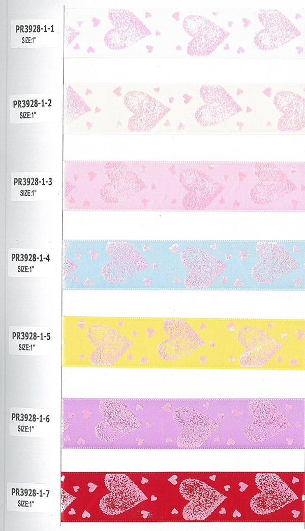 設計虹彩白色的愛心圖樣印刷,在光滑的緞面織帶上,呈現一種華麗的風格。多種顏色可供挑選,顏色搭配也可以由客戶自行指定。此款織帶有正面與反面之分;特殊的收邊手法,有效預防織帶拉扯或裁切後可能造成的損壞;相較於加入細鐵絲的織帶,此款更能展現織帶的靈活線條。